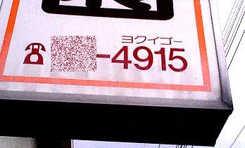桐生市某施設の、看板.(市内局番部分画像処理編集者) 電話番号の語呂合わせのルビが、よくみると「ヨクイゴー」(笑)東京なら、「イコー」でしょうね. 「行く」は群馬では「いぐ」とガ行活用ですが、なかなか看板に使っている例は探し出せなかったんだぃね.T先生はさすが、大分県出身だぃね.オレなら見過ごしているところだで. 見にくいと思うんで、下に拡大し、画像処理してみたで .確かに「ゴー」だぃね(笑). ![]() |