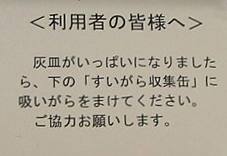 ゆんさんがデジカメで撮影、送って下さった抱腹絶倒の掲示! 群馬県庁29階の喫煙所のテーブルに貼ってある「注意書き」.他のフロアの喫煙所は確認できなかったそうです.関西人で、29階で喫煙した人は、「群馬はけったいなとこやなぁ〜!」と思うでしょうね.(笑) きっと、県民に親しまれる県庁を目指しているんだんべぇ?.いや、そうと信じたい!(笑) さぁ、そこの君!確認へ県庁へGo! 「まける」は東毛地区ではあまり使わねぇけんどね・・・これが「うんまける」や「おんまける」なら更によかったなぁ.これでも充分おかしいけどね.(^^) |