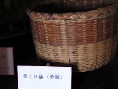 「桑くれ籠」 「ぐんま昆虫の森」の茅葺(かやぶ)きの民家で展示されていた養蚕道具の中の一品だぃね。 やっぱり群馬は、モノは「やる」もんじゃなく、「くれる」もんなんだぃねぇ・・・・ |