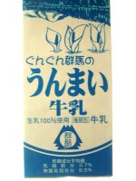 pippi@桐生さんが、桐生のスーパーで売られていた 「ぐんぐん群馬のうんまい牛乳」をご提供下さったで! 富士見村でも売られてたとの情報あり. 右のラベルをみると確かに「うんまい牛乳」だぃねぇ・・・「うんめぇ牛乳」なら更に良かったなぁ(笑) |