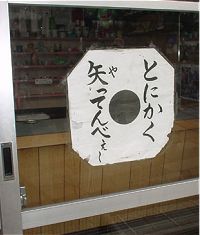 温泉街の石段を登っていたら、射的屋で見つけたそうだぃね. 「とにかく矢ってんべー」だぃね. 伊香保に来た観光客が「群馬にきたなぁ」って実感する張り紙なんだんべねぇ? 旅の恥はかき捨てで、群馬でいっぺぇあそんでってくんなぃ! |