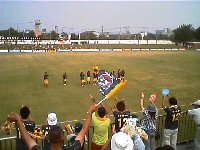 ザスパ草津としての初対戦は、天皇杯群馬県代表を懸けた群馬県サッカー協会長杯サッカー大会決勝(2002年9月8日:敷島サッカーラグビー場)。この一戦のことは、昨日のように鮮明に記憶しております。何しろ相手は、幼稚園児にまで学徒動員をかけ、可愛らしいいたいけな声援を自軍選手に送るではないですか!一方こちらはと言えば、今もあんまり変わりませんが、強面のおぢさん(失礼!)が「ごるぁ!」とか言ってたりするのです。もう、幼稚園児とそれをいぢめる秘密結社の戦闘員みたいな、そんなデパートの屋上ヒーローショーのような構図です。
