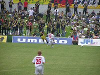 程なくスタメン発表アナウンスが始まり、12:00ジャスト前半開始。従軍カメラマンの任務として得点シーンはもちろん、チャンスはすべて抑えようと意気込んだのだが、ボールは殆ど自陣内で展開。なっかなか敵陣に行かねんだよね。んで7分、24分と2点も啓上。2本とも目の前でまーず綺麗に決められたぃね。失点シーンはいいから早く得点シーンを撮らしてくんなぃ。このまま来た道を失意土産に帰るんだけは勘弁してくれ!とマジで神に祈ったぃね。
