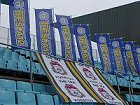 本年の「草津劇場」ですが、本公演(JFL)は終了しましたが追加公演(天皇杯)はまだまだ上演中です。本日の会場は杜の都・仙台。伊達政宗公の治めし奥州の都です。そして演目は「仙台決戦! 横浜・F・マリノス vs ザスパ草津」。平日の開催(ナイター)なので、仕事をお休みして我が愛車「マイシンザン号」を駆り一路みちのくへ。あ、そうだ、折角泉まで行くのなら、少し足を伸ばしてアレを食べにいぐべぇ。向かった先は宮城・山形の県境に近い山形県東根市の「らーめん紅花」。学生時代を山形で過ごした私のお気に入りの店です。注文したのは、ほーせん的日本一ラーメン「バターポテトラーメン(醤油味;¥680)」。西の人にはちょっときつめかも知れませんが、関東近隣以北の醤油味暗黒スープ(笑)に抵抗のない人には絶品です(お近くをお通りの際はお試しあれ)。さて、うんまいラーメンも食ったし、後はお決まりの"遠征先戦勝祈願"だぃね。と言う訳で、仙台城跡まで戻り、杜の都を見下ろす伊達政宗公の銅像に手を合わせ、護国神社でザスパ草津の戦勝を!と祈ってきました。一連のセレモニーも無事完了したので、そそくさと試合会場に向かいましょう。 珍しく道に迷うこともなく、あっさりと仙台スタジアムまで辿り着きました(迷子分の時間を多めに取っておいたので、早く着きすぎました(^^;))。仙台のベッドタウンとして大きく成長した泉区の街中にそのスタジアムは聳えています。高速道路や地下鉄の駅から近く、一般道のアクセスも良好。場外駐車場(有料)の数も多く、しかも安い。いーなぁ、こーゆーの(欲しい)。泉中央駅方面のスタジアム北ゲートには、既に多くのマリノスサポさんが集まっています。その間を、しかし怯むことなく堂々と軍旗・Lフラッグをはためかせながら行進し、東ゲートへと向かいます。誰もいない…(正確には4〜5人)。まあ、いいや、旗をふりふり示威活動でもしてよう。そうして待つ間、J's