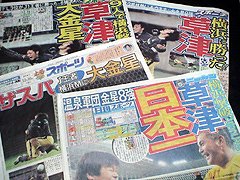 ![]() ▲翌日16日、スポーツ紙各紙はザスパの快挙を称えた |