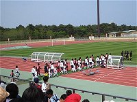 観戦無料とのことなので未来のJ入りを目指すチーム同士の熱い戦いを観ながら昼食をとることに。この試合、TDK秋田が同点ゴールを決めた瞬間に試合終了というドラマティックな展開。地元ヴィーゼのサポーターから落胆の声があがっていました。両チームとも数多くの決定的なチャンスがありながらもなかなか点が入らない展開に、我がザスパトップチームの姿がかぶってしまったことはここだけの話にしてくんな...^^;このグラウンドでは引き続き次の試合(グルージャ盛岡×NECトーキン)が行われた模様だが、我らの本日の戦いの場が開場となったので移動することに。