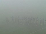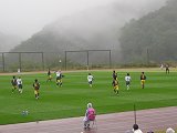 霧で見づらいのは選手の姿。それに加えこの日はイマイチよく聞こえなかった選手の声。追加点を奪われたあとはますますおとなしくなってしまったチャレンジャーズチーム。棗は痺れをきらしてか、「お前ら、しゃべれよーーー!!!」と怒鳴る。しかし元気がないのも依然変わらず、ゆるいパスが多くて仙台の選手に奪われてしまうのも依然変わらず。さらに追加点を奪われるのも時間の問題...な状況で前半終了。