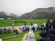 後半は前半よりも霧がすごい中でキックオフ。諸に変わって小久保が入ったようだが...よく分からない。後半開始早々に豊原がシュートを決めて1点返したようだが、それもよく分からない。その数分後には仙台が3点目を決めるがちっとも分からず。 しばらくの間は何も見えず、試合経過は場内アナウンスのみで把握するという状態に。目の前で行われているはずの試合の様子が何も分からないというのは、なんとも歯がゆいものです。霧に加え雨も大降りになってきて、たまに霧が薄くなったとしても、もはや試合の流れなどちっとも分からず...このように観る側としてボロボロな後半に唯一分かったのは、樋口の退場でザスパは10人での戦いを余儀なくされた、ということ。樋口は前線への縦パスを追ったのだが、エリア内で相手GKと激しく交錯。