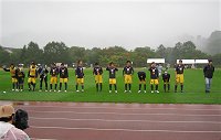 ちょっと早すぎたかな?さすがに集まっているサポは50名弱といったところでしょうか。 この日の会場、草津町本白根第三グラウンドに足を運んだのは昨秋のJFL対佐川印刷戦以来。あのときは両ゴール裏に仮設シートが設けられていたので、同じ会場とはいえまるで違うグラウンドのように見える。今にでも雨が降りそうな悪天候だからであろうか、観客も思ったよりは集まってこない。特筆すべきことは、前日のアウェイ徳島戦から戻ってきてそのまま草津に来たというサポーターが結構いたこと。素晴らしきザスパ愛かな、頭があがりません。ちなみにベガサポも最終的には30名以上集まったでしょうか。前日の平塚での試合を経て群馬までやってきた方が多かった様子