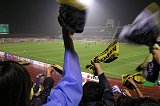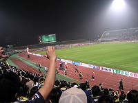 今、衆目は欧州のある国にほぼ向いております。斯くいう私もその一人ではあります。4年に一度のサッカー界最大の世界イベントである、FIFAワールドカップ・ドイツ大会の開幕が目前に迫っております。一サッカーファンとして、このお祭りに興味が無いわけもなく、勿論我らがサムライ・ブルーの躍進を祈念して止みません。が、代表は僕が応援しなくても(応援する人いっぱいいるし)それなりに大丈夫だと思うので、僕はいつも通り、「僕らが一生懸命応援しなきゃいげねぇチーム」の応援を一心不乱にしたいと思っておりますです。本日の試合は、ホーム・ナイター戦です。個人的には実に久しぶりの参戦で(A・柏戦以来)、ナイターも今季初です。夕闇の敷島にお迎えするは、第1クールにおける対戦で、長崎の借りをあと少しで返せるところまで追い詰めることができた、東京ヴェルディ1969です。しかしながら、今節の我がチームは前節の余波を受け、出場停止選手が実に3人も居ます(FW;吉本選手・高田選手、MF;山崎選手)。とりわけ痛いのがFW2選手の不在。さて、強敵を迎えてこの窮地。これはまさに逆境!「漢は逆境をはね除けてこそ」と言いたいところですが、避け得ない状況をいかに打開するかは、名将たる植木監督の卓越した手腕にお任せするほかありません。そういった背景のもと練られたスターティングメンバーは次の通りとなりました。GK:1高木選手、DF:4齋藤選手・6鳥居塚選手・17尾本選手・3依田選手、MF:7佐田選手・5チカ選手・15中井選手・10島田選手、FW:14佐藤選手・24太田選手で構成される一見4-4-2のフォーメーションです。チカ・中井のボランチコンビはお馴染みなのですが、さて、そうすると中盤は左右に佐田・島田両選手となるのか。はたまた、佐藤選手を少し下げて島田選手をセンターに据えた太田選手の1トップとするのか。いろいろな構成が考えられますが、実態は試合開始後に判明します。 駐車場がアレなんで、あまり期待してはいなかったんですが、場内は結構な数の観客で埋まっております(5500人超えたいね)。有り難いことです。試合前には、各選手がサインボールをスタンドに投げ込んだり(2個獲得したラッキーな少年が居たいね)、中学生によるブラス演奏があったりと、なっから賑々しい一時です。サポ軍団はというと、いつにも増して気合いの入った発声練習とコールを行います。気合いの入る訳は、スタジアム北ゴール裏の即席横断幕に集約されております(敢えて書きませんが)。毎試合が正念場な訳ですが、今日の試合は今後を左右するかもしれない正念場中の正念場、“KING of 正念場”です。万全でない体制で如何に戦うのかを見極める一戦です。言い換えれば、チームとしての総力を計るための試練とも言えます。その意味からも、とくに控えに入った選手の活躍が望まれます。
