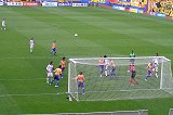 梅雨を思わせるような天気なんだけど、横浜戦並みの入りは「ラモス効果」か、スポンサーのスペシャルマッチ効果かな。いゃーそうじゃねぇ。仙台・鳴門と連敗して帰ってきたけど、なんせ4月からはホーム負けナシだ。相手は点も取るけど、失点も多いヴェルディだ。点の取り合いでも最後はキッと勝つんに決まってる。っつー期待で集まったんだぃね。なんて思いながら、試合前のイベントで行われた中学校吹奏楽部のアップテンポなリズムが心地よく、ザスパイレブンもこのリズムで乗ってって欲しいと開始のホイッスルを待っていた。ところが、続く選手紹介でズッコケたぃね。例によってアウェイのフラットかつ素っ気無―い紹介の後に事件は起きたね。「ゴールキーパー 高木〜喜成〜・・」と確かに俺は聞いちまったょ。歳のせいで少しは耳も遠くなっちゃいるけど、まっさか名前まで聞き間違えはしねー。確かに今日のキーパーはダブル高木だから、同情しねーでもねーけど、何んせ八百万の神々がおわしますこの国で、神様高木選手の名前を読み違えちゃったんだから、悪いことが起きなきゃいいがなーって思ったのは俺一人だけだろうか?もう一つ生も録画も群テレナシにもズッコケた。何で?今日は、FW高田選手、FW吉本選手、MF山崎選手が出場停止。スタメンはいつものFW高田選手が佐藤キャプテン、MF山崎選手が依田選手に代わっただけ。「期待と人間的な興味」を持って見ている中井選手も戻ってきたし、守備はOKじゃねぇかな?なんて思ってたら、のっけからヴェルディがリズム良く攻勢に。ザスパはなんとなく浮き足立って見えたのは、ヴェルディの最初のFK。ジャストミートしなかったから良かったもんの、外側の選手をド・フリーにしちまってたいね。 それでも島田選手のパスが基点になって、3対2の数的優位でゴール前に迫るビッグチャンスや、2トップをターゲットにしたロングパスの折り返しで先制か?と思わせるシーンも何度か見せてもらってたんさね。 ところが前半23分、ゴール正面でFKを与えちゃったぃね。