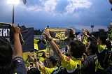 今日は、第2クール、第17節でのアウェイ仙台戦。先週の山形戦では、下道で片道7時間の道のりを交替で自走しながら頑張り過ぎちゃったせいか?ちょっと軽いエコノミー症候群になっちゃってるのかなぁ〜?な〜んて。ここ一週間で3連戦なもので^^;、ちょっとお疲れモード。でも、そ〜んなことは言ってはいられない。選手たちのことを考えれば、まず応援部隊が行っとかないとっ(^.^)。今回も、前回と同様JRにて参戦することにしました。地下鉄にも慣れたもので、さすがに3回目の仙台入りは免疫力もできたようで、あの大集団の中でも気軽にスタジアムの中を探索することにしました。今日は何なん?いつもそうだっけ?ワンコインデーと言うことで、相手のホーム側では、お弁当や軽食類などがすべて500円にて販売されていました。アウェイ草津側とは違うんだぁ、へぇ〜そんなことがあったなんて。 アウェイ草津の反対側に回ると、仙台サポさんから気軽に声を掛けて頂き、草津側の画像を撮らせてもらうことにしました。そして、仙台名物・牛タン丼と○―ルを持ってアウェイ側に戻り、今日は初の連勝をかけて仙台をいただき〜(^^)と言った意味もこめて、周りのみんなと前祝です。今日もなかなかの入りの様子、最終的には、14000人を超える観客数のうち、草津は200人以上のサポーターが集結しています。いつもアウェイに来ると、ホームとは違った興奮がふつふつと湧き上がって来るものです。本当に、今日こそやっちゃいましょう!です。スタメンが発表されました。今日は、前回ケガで離脱している尾本選手に代わり依田選手が起用されています。GK高木選手・DF依田選手・斎藤選手・鳥居塚選手・佐田選手の4バック、MF山崎選手・中井選手・チカ選手の3ボランチに、トップ下の島田選手、FWは、累積イエローで出場停止の太田選手に替わり吉本選手と高田選手とのコンビ・2トップでの布陣でいきます。 さぁ、試合開始となりました。開始早々10分、相手のFKからFWボルジェス選手に渡った球を中央にいたFWチアゴネーヴィス選手が受け、さらに走りこんできたDF菅井選手のフリーでのシュートが決まり先制点を献上。あーっ!しかしその直後、13分に我ら草津の反撃です。ゴールエリア付近から、司令塔・島田選手からのFKで左からのクロスが上がり、飛び込んできた高田選手が一瞬にしてフリーとなり、絶妙なタイミングでのヘディングがゴールマウスに吸い込まれていったのです。GOOOOOAL!!!! やりました〜!!初めて仙台から得点を挙げることができました(^o^)丿。今日こそ、仙台から勝ちをもぎ取らねば!!仙台は3トップ・ブラジリアントリオに対して、草津は怯むことなくマンマークでしっかり前線から抑えることができ、中盤からのコースも中井選手らがうまく回り込んでスルーパスを出してくれています。仙台のパスミスからの切り替えしも早く、島田選手の絶妙なパスが入ってくるようになりました。そして多くのセットプレーのチャンス。はっきり言って、前半は草津のペースで試合が展開されていました。果敢に攻める草津イレブン。参戦している私たちも「惜し〜いっ」の連発です。よいよいその調子!っと思っていたのです。後半が始まって7分後、仙台から右サイドに上がった球は、誰もがオフサイドだと思って一瞬立ち止まった草津側に対し、悲しくもオフサイドの旗は上がらず、一人駆け上がってきたFWボルジェス選手にゴールを押し込まれてしまいました。主審に駆け寄る4〜5人の草津の選手たち。観ていた私たちもオフサイドだったんじゃないん?え〜っ違うん??草津サイドの願いも届かず、試合はそのまま流れていったのです。またその直後、ゴールエリア内で2度目のイエローをもらってしまったMF中井選手が退場となってしまい、試合の流れはガラッと変わってしまいました。中井選手が抜けた穴は大きく、数的不利に立たされ、張り詰めていた集中力が切れてしまった瞬間でした。 そうなると、どうにもなりません。10人で守って、チャンスが来たらカウンター攻撃だぁ!と願う私たちの目の前で、ピンチをどうにも切り抜けられない草津の選手たちがいました。その後もうまく動けなくなった選手たち。後半17分・22分にはロングパスから一人駆け上がってきたFWボルジェス選手に結局ハットトリックを決められてしまいました。後半29分、山崎選手・吉本選手に代わって桜田選手・佐藤選手が投入され、巻き返しを計りましたが、時すでに遅しです。佐藤選手のヘディングも惜しくもGKやバーに弾かれ、点につなぐ事ができません。試合終了前にも1点献上してしまい、終わってみると、1−5で惨敗でした(>_<)。今年も、多くの試合に足を運んでいますが、昨年と違うのは得点力です。まだまだ取れるチャンスはいっぱいあります。でも、気持ちを切らせてしまったらもったいないです。内容的にも、押しているゲームはたくさんありますが、結果的には勝てていないのです。そこの違いは何なんですか?フィジ