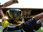 世の中はW杯モード。日本代表はオーストラリアに苦杯を舐めちまったし、つぐ日の夜には命運がかかった日本vsクロアチア戦があらぃね。だけんどW杯以上に大切なJ2リーグ戦。しかも今回の相手は、JFL時代からのライバル、因縁の愛媛FC。あの逆転勝ちを収めた敷島サカラグ、雨中の天皇杯3回戦から、はや半年以上。互いにあの頃から大きくメンバーは変わっちまったけんど、因縁の宿敵との対決なんは間違いねぇ。今回は愛媛のJ昇格後の初の敷島での一戦っつーことで、W杯より熱い戦いが期待でぎらぃね。オレも職場に頼み込んで半休もらったぃね。上電→中央前橋駅→定額タクシーで敷島入り。梅雨の中休み、真上より夏至に近い太陽が敷島陸上を容赦なく焦がさぃね。スタメン発表。愛媛の闘将FW友近、やっぱケガ回復しなかったんかぁ、残念だぃなぁ。それにしても・・・まっさか暑ちぃ。カクラン起こしそうだったぃね。はぁ30℃は越えてるだんべ?ドイツも暑ちぃだんべけんど、前橋も日本屈指の暑い所。このまんまじゃ、W杯よりも暑い戦いも必至だぃね。こりゃ選手もサポも後半体力勝負だぃね。因縁の対決、ラウンド5、キックオフ! ザスパの陣形はなんと前線に高田、吉本、後藤を置く、4-3-3の攻撃的布陣。こりゃすげぇぞ!と思っていたら、前半開始早々2分、鳥居塚のクリアが愛媛の正面に渡り、田中にゴール左隅に蹴りこまれちまって、まっさかあっけなく失点。みな呆然。立ち上がりの失点癖は、昨年来から直んねぇザスパの慢性的難病だぃね。 その後も愛媛に押されっぱなし。4バックも上手く機能しねぇで、お世辞にもいー展開じゃなかったけんど、どうにかこーにか凌いでいたぃね。チカの足元にはほんと冷や冷やもん。オマケにつまんねぇ遅延行為でイエローも食らう。35分ごろ、島田がゴール前でオーバヘッドを試みたけんど、ゴール左へそれちまう。38分には、またも愛媛の田中に正面からドフリーでシュートされるも、高木が見事な神セーブ!危ねぇ危ねぇ。前半がこのまま終わっちまーかと思った前半ロスタイム、高田が左サイドでファールされ、FKを蹴るのは島田。島田の左足から放たれた放物線は、ゴール前の吉本の頭に合わされ、ゴール右隅に吸い込まれた!GOOOOOAL!!!! 暑さも忘れてスタンドは歓喜の坩堝。前半終了1−1。前半の流れは悪かったけんど、なんとか前半のうちに追いついてよかったぃねぇ。後半開始。システムをいつもの3-5-2に戻したみてぇだ。7分ごろ吉本が右サイドでファールもらってんのに、座ったまま副審にしつこくクレームつけやがって、無駄なイエロー。FKのキッカーは再び島田。ゴール前でのポジション取りで、中井にイエロー。両ボランチはこれで2人とも次戦出場停止。カッカした吉本がやんちゃして、またイエロー(→レッド)もらっちゃうんじゃねぇかってほんと冷や冷やしたで。愛媛の高萩のトラブル(コンタクトが外れた?)もあって、そんなこんなでFKまで時間はかかったけんど、島田は集中力を切らしていなかったぃね。島田の左足から放たれたボールは、再びゴール左のネットを揺らしたぃね。GOOOOOAL!!!! 島田すげぇ!2−1!逆転!! こうなると一気にザスパに流れが傾き、暑さもあいまってか、愛媛の動きがだんだん悪くなってきたんさ。後半16分には、後藤に替わった山崎が右45度から駆け上がるも最後にシュートを打たねぇ!こんなところで日本代表のFW陣みてぇなマネをしなくってもいーんだからちゃんと打ってくれ!容赦ねぇ暑さでますます両軍の足が止まり気味。スタンドもなっから暑ちぃ。選手も疲労困憊してるんだけんど植木監督はなかなか交替のカードを切らねぇ。愛媛が攻めあがって後半40分ごろ一度ネットを揺らして、スタンドは悲鳴が上がるも、オフサイドの判定で窮地を脱したぃね。最後は中井が右サイドを駆け上がって、左の高田へパス。高田は暑さと疲労のためなんか足が上手くでねぇでごっつぁんゴールを外しちまった。あれを決めてくれたら、ほんと楽だったんけんどねぇ。 (つぐ日の深夜に起きた日本代表の某FWの失敗から比べりゃはるかに同情の余地があらぃね。)暑さの中の因縁一戦は、走撃!で上回ったザスパが2−1で勝利!対愛媛不敗伝説は今日も継続だぃね。でも久しぶりに勝ったけんど得失点差で最下位脱出はでぎなかったぃねぇ。でもこれで5勝!昨年の勝ち星に並んだぃね!敷島の帰りは定額タクシーで。中央通りの前でおろしてもらって、噂のザスパークに寄ってきたぃね。前橋のアーケード街に行ったのはオレも10年ぶりぐれぇだぃね。前橋のみならず、群馬中でまっとザスパが盛り上がればいーやぃねぇ。そんためには勝ち星の積み重ねが何よりの妙薬。ザスパ、がんばってくんな。【すずき@東毛】 |