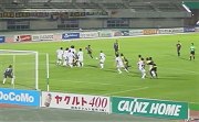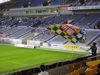 | 朗報は西国より来たれり。前節アウェーで行われた鳥栖戦にて、ザスパ草津久々の勝報がもたらされました。今季の勝ち星はこれで6つ。たかが1勝、6勝目。されど、我々にとってはとても大事な6勝目なのです。大事、といえば、この試合の持つ意味も実は非常に大きかったりします。昇格戦線で戦っている(昨年のお友達)横浜FCを相手に、チームJ参戦後初の連勝が懸かっているのです。一つハードルを越えたことで、今は何でもできそうな、不確かなんだけど確かな自信(意味不明^^;)に満ち溢れてたりします。「何をやっても勝てやしねぇ」という状況から脱却し、少なくとも「頑張ったなりのご褒美はあるんだぜ」って状態にはあると思いますし、選手も自信を取り戻していると思います。良い流れは川を澄ませる。今がまさにその分岐路です。元の濁流にはもう住みたくないんで、今日もみんなで頑張んべぇや! 今日の対戦相手である横浜FC、もはや多く語ることもないでしょうが、この試合で注意すべきは新加入のFW・アレモン選手でしょう。はて、ドコカデオメニカカリマシタカ?そうです、昨年京都在籍時に随分な目に遭わせてくれた張本人です。なんで横浜に居るのやら。その特徴、危険性は身をもって(イヤと言うほど)知っているだけに、この御仁にだけは仕事させちゃいげねぇだんべ。 前節・鳥栖戦からですが、スターティングフォーメーションに変更があります。なお、スタメンは次の通り。GK:1高木選手、DF:11寺田選手・4齋藤選手・25田中選手・7佐田選手、MF:6鳥居塚選手・5チカ選手・13山崎選手・10島田選手、FW:9高田選手・20吉本選手。このメンバーで組むシステムは4バック2ボランチの4-4-2。大きな変更点は鳥居塚選手をボランチに引き上げたこと。昨季まではこの位置で後方指揮を執っていたので、適性については何も心配はしていないし、それどころか、前線でマークされて孤立しがちな島田選手の負担を軽減するためには有効な配置といえるでしょう。一方で心配なのは、その鳥居塚選手が抜けるDF陣。横浜は、どちらかというと攻めより守りに定評のあるチームなので、守備に忙殺されてなんにもできないという状況よりも、攻めても攻めても球が前に行かないという状況が想定されます。攻めにかまけて両SBが上がった時の2CB(ドラゴンと淳くん)に掛かる責任は重大といえます。なんといっても、相手のFWにはアレモン選手がいますから、自陣内で下手は打てませんよ。また、2ボランチのうちチカ選手は主に攻撃参加に傾注することになるでしょうから、鳥居塚選手の守備参加は不可欠となりそうです。うう、トリさんくれぐれも怪我なんかしねぇように頑張ってくんない。カズ効果か、いやいや島ちゃん効果でしょう、何時しかスタジアムは満場の人入りです。メインスタンドが埋める様を見るのは何時以来やら。こんな光景をいつも見たいよね。そのためには、選手に頑張って貰わねばならないし、その彼らをプッシュアップするために僕らも頑張んないと。遠景に夕映えを背負う榛名の峰をいただき、いつもより音量の大きい(=音源が多いんだいね^^)草津節が場内に木霊するなか、チームの新たなる一歩を目指し、キックオフ! 前半は、開始直後から横浜の主導で進行します。なんとしても先制して堅守に移りたい横浜と、なんとしても点を与えることなく相手を攪乱してその隙に乗じたい草津の攻防です。前半5分の横浜・右サイドからのFK(キッカーはアウグスト選手)を皮切りに、この後多くのCK・FKが草津ゴール前に蹴り込まれますが、いずれもさほど精度が高くなく、また、ゴール前での連動も人数が居るだけで機能的とはいえない状況に終始するなど、セットプレーで失点する危険性は低そうに見えます(だからってたくさん機会をやっちゃ駄目よ)。まあ、こうなると前線の顔ぶれから、守備時の不用意なミスが命取りになることが往々にしてあるので、そこんとこヨロシク。前半7分、横浜・山口選手とアレモン選手が二等辺三角形の二辺の様な対称の動きをゴール前で取り、草津守備陣の分断を図ります。二辺の一辺たるアレモン選手が防御網をかいくぐると、素早くシュートを放ちます。ここで俊敏な動きを見せたのは守護神・高木選手。いやぁ、こりゃ、今日も神頼みかねぇ^^;。それにしてもアレモン、またも我らの前に立ちはだかるか!前半14分、草津DFのクリアミスを見逃さず、またしてもアレモンだ。単騎ゴールに肉薄という絶体絶命の危機を救ったのは、前線から駆け戻ったSB・寺田選手。サンキュー・寺ちゃん♪。そして前半21分。自陣内でのDF田中選手からチカ選手への横パスをアレモン選手に掠め取られると、シュートまではあっという間でした。あれだけやっちゃいげねぇって先制点を、こうもあっさりくれちまうたぁ、どういう了見だぁ!ほらほら、横浜さんは守りに入っちまったよ。相手の守りが堅く、また攻撃の基点たる島田選手にボールが入らないという状況を見かねて、前半24