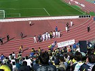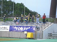 20分、松浦選手に代えて19.後藤選手投入。今日のFW陣は走ってはいるのだが、如何せんいいボールがなかなか来ないので不完全燃焼気味である。ここで後藤選手の豊富な運動量を生かして、相手DF陣をかき乱してほしい…とはいってもなにせFWまでボールが届かないという状況は結局試合終了時まで変わることがなかった。試合後にデータを見てみると山形はシュート13本。かたや我がザスパは6本という始末。正直言うと「え、6本も打ってたっけ?」という位印象が薄いものである。 試合終了後、サポーターと一緒に踊り、歌い、喜ぶ山形の選手たち。一方うなだれたまま場内を廻るザスパの選手たち。連勝できなかったという悲しみよりも、ちっとも山形に歯が立たなかったということが悔しかった。チームのいい勢いが持続できない限り、我がチームに「連勝」は見えてこない。確かにチカ選手・高田選手という要になる選手の欠場はイタイ。けれどもこの長いシーズン、こういったことは今度もあるだろう。そりゃあ勝ってくれたほうが嬉しいけど、引き分けだっていい。要は負けなければいいのだ。今はコツコツと勝ち点を積み上げていくことが大事なのだ。それと、最後にこの日唯一嬉しかったこと。冒頭に申し上げた観客数だが、この悪天候にも関わらず2,000人を超す人々が敷島へ足を運んでくれました。週末のチラシ配り効果でしょう。せっかく来てくださる方々のためにも、次はいい結果出すんべや!【きくり∈東毛】 |