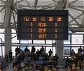どうしても、あの感動をもう一度味わいたくて、訪れてしまうこの聖地!都の杜・仙台。ザスパ草津がJFL時代、天皇杯の準々決勝で王者・横浜マリノスを制した、あの奇跡の舞台のスタジアムに、あれ以来毎年やって来てしまう訳です。いつも上位にいる仙台は貫禄もあり、毎年どうやって喰らいつくのかがキーポイントです。本日は、勤務の関係でバスでも自走でもなく、JRを利用しての参戦となりました。途中、東北新幹線で郡山に着いた時、能登半島沖地震を知りました。(その時は、震度がどれ位なのか知ることもできず、家に帰ってからどれほどの被害があったのか知ったのですが・・・)仙台に着いてから、駅のホールで全国の物産展をやっていましたが、やっぱり仙台の地に着いたのですからその土地柄の物を頂かないとと言うことで、今回はお初^^のずんだプリンとずんだ餅を購入して、地下鉄に乗り込みました。あえて、試合前から洗礼を受けるのも回数を重ねてくるとこちらも多少は馴れたもの。(しかし、個人的にはいままでボコボコにやられてしまう黄色軍団‘仙台や柏のことですけど〜^^;’眼が痛みますぅ) しかし、今年J2・3年目の草津は今までとは違います!第5節目にして、徐々にリズムを作りつつある試合は、誰が観ても昨年までとは違ったレベルの内容がぎっしり詰まっております。さて、今日はどんな作戦で臨むのかワクワクしてきましたよ! 今回は、前回と選手を変えてのスタメンには、GK1本田選手・DF7佐田選手・DF4田中選手・DF5チカ選手・DF2寺田選手・MF18櫻田選手・MF17秋葉選手・MF6鳥居塚選手・MF8山崎選手・FW9高田選手・FW11氏原選手 控えには、GK21常澤選手・DF3尾本選手・MF30松下選手・MF15桑原選手・FW20松浦選手の布陣で挑みます。フォーメーションからは、4−4−2としていますが、下がり目にしてがっちりディフェンスを固め、田中選手やチカ選手はゴール前を完全にホールした形を取っていました。櫻田選手に関しては、相手ロペス選手を封じ込む作戦に出ていました。でも相手にサイドで揺さぶられてしまうと、こちらの守備も次第に合わなくなり、その結果何本のシュートを打たれてしまうという怒涛の攻撃に脅かされてしまいましたが、我ら草津も必死に耐え、ポスト君やクロスバー君の活躍もあり、相手に得点を許しません。そんな中からも、草津もチャンスが訪れ、中盤で相手を交わした秋葉選手が絶妙なタイミングでスルーパスを氏原選手に送り、相手DFの裏を取ってそこに氏原選手が豪快なシュートを放ちますが、惜しくも右ゴール隅をかすめていきました。(惜し〜い!!) また、その直後にもサイド攻撃を封じている相手・仙台の隙を付いての中央からゴールサイドに出したパスを、すかさず反応した氏原選手が右サイドからシュートを打ちますが、惜しくも左ゴールポスト脇へ・・・(またしても惜し〜い!) 必死に耐えてゴールを守って、前半0−0で折り返すことができました。正直なところ、前半までにかなりのシュートを打たれています。が、点を入れられないように耐え凌ぎ、選手が全員で守って、チャンスを伺っている様子が伝わってきました。スゴイ!今日はやれる!!必ず相手・仙台も運動量が落ちてくるチャンスがある。そして、そのチャンスに草津の気力・体力(足!)を生かす作戦が的中したのです。 後半になってから両チームとも足が止まりはじめ、お互いにパスミスが多くなってきた感じで、何か流れを変えていかないと、と選手交代を用意していた直後、相手・仙台にポッカリ空いてしまっていた左サイドから萬代選手にゴール前まで持ち込まれ右に振った所にロペス選手にヘディングを決められ先制点を献上。去年までの草津だったら、ここからズルズルと大量失点に陥ってしまうところでしょう。その直後我ら草津も動きがあり、氏原選手からFW20松浦選手へ、また山崎選手からMF15桑原選手へ、そして3枚目の切り札には秋葉選手からMF30松下選手へと松下選手を起点に足を使っての作戦が始まりました。今年の草津は、第2節めから点を取られても、絶対取り返す勢いを感じることができます。今年の草津は違う! 残り時間20分足らず。後半34分、桑原選手から送られた左からのパスを高田選手が反応しDF陣に切り込み、その裏を抜けた松浦選手が相手GKを正確に確認しての鋭いシュートが決まったのです!!GOOOOOAL!!! 強豪・仙台から点を奪い、追いつきました!松浦選手にいたっては、古巣・仙台に恩返しのシュートが決まった訳です。私も涙が出るくらい嬉しくて、草津ゴール裏は、もう狂喜乱舞の状態です。でもまだまだ時間は残っている。相手・仙台は前がかりで攻めの手を抜きませんが、我ら草津は引いて守って全員でゴールを守ります。少ないチャンスにも桑原選手の惜しいFKもありました。そして試合終了。多くの仙台サポがいるユアスタも一瞬の静寂が訪れました。結果的には1−1でのドローの結末でしたが、我ら草津にして取られても取り返す!という気持ち、そ