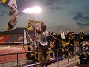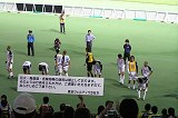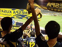 この日は「サンクス伊勢崎デー」と題し、伊勢崎市民に優待券が配られるというクラブ初の試み。会場には伊勢崎オートのオートバイやマスコット、名物伊勢崎もんじゃの試食などが行われ、いつもよりにぎやかな雰囲気。また同時に先日の新潟県中越沖地震に際し、選手が参加しての募金活動なども行われました。夜の敷島は日中ほどの暑さもなく、どちらかというとサッカーをやりやすい気候。試合開始も近づき、スターティングメンバーの発表。この日は守備の要、チカを累積警告で、また攻撃の核である高田をケガで欠く、エマージェンシーな布陣。また、試合に先立ちオフィシャルHPで中井の期限付き移籍が発表されるなど、何か今後の変化を予感させるような試合開始前でした。 そんな雰囲気の中キックオフ。立ち上がり、福岡が様子を見ているのか、ザスパの出足がいいのか、積極的な攻撃でチャンスを何度か作ります。決定機には至りませんが、氏原の献身的な動きや後藤の鋭い出足で、選手の気合を感じました。が、徐々に福岡が流れを引き寄せ始めます。この日福岡は3バックを敷いており、中盤での数的優位から的確な繋ぎと動き出しで、これまでの対戦と同様、ワイドにピッチを使い始めると、ザスパの選手が福岡の選手を捕まえきれなくなってきました。そして前半11分、注意しなければいけないアレックスにいいように抜け出られ、先制点を献上。その後櫻田のミドルなど、何度か見せ場を作りますが、得点にはつながりません。流れを引き寄せられないまま、この日の魔の時間帯、前半30分台に突入。アレックスに立て続けに得点を許し、あっという間にハットトリックを決められると、続けてセットプレイからチェッコリ、最後は二列目から山形恭平と、最終ラインに粘りがなく、最後は棒立ち状態で得点を献上。なんとかここで踏みとどまったものの、福岡の攻撃にディフェンスがまったく対応することができず、前半終了時点で0−5というとんでもない展開になってしまいました。ハーフタイムに引き上げる途中、給水ボトルを叩きつける本田とうなだれる選手達。が、サポーターはここぞとばかりに気持ちを切らすことのないよう、より一層の声量で鼓舞します。 後半開始早々、ある意味選手も開き直ったのか、前半よりかなり出足よくボールに喰らいつき、自分達のペースに引き込みます。相手が主力のアレックス、久藤を下げたということもあるかもしれませんが、選手の動きが明らかに変わりました。櫻田が、松下が、中盤ですばやくボールを奪い、前線に供給しチャンスを作ります。何度か波状攻撃を行いますが、決めきれず。ここで植木監督早くも手を打ち、後藤に代えて松浦、秋葉に代えて吉岡を投入します。代わった二人も、必死にボールを追いかけ、観ているこちらも引き込まれます。そして、鳥居塚に代えて奥山を投入。さらに前線を活性化させ、ゴールへの執念を見せます。途中から右佐田、左吉岡となった両SBも積極的にオーバーラップ。中盤のプレスで必死にボールを奪い、跳ね返されてもこぼれたボールに喰らいつき、相手陣内からボールを出しません。そんな攻撃の中、CKのこぼれ球を拾いながら波状攻撃を行い、最終ラインから上がってきていた藤井がペナルティエリア内で布部に足をかけられ、布部がこの日2枚目のイエローで退場し、PKをゲット。松下が落ち着いてGOOOOOAL!!! さらに選手、サポにも勢いがつきます。 その後もほぼボールを支配し、最終ラインからFWまで、必死にボールを追いかけ、最後まであきらめず、ゴールを狙い続けましたが、結果に結びつかず、1−5という結末。前半5点取られたのは確かにいただけませんが、後半選手の必死さが観ている者にひしひしと伝わり、M席でブーイングした人はほとんどいませんでした。今後も苦しい戦いが続きますが、今日の試合でザスパが忘れていたものを思い出した感があります。負けると終わりだったJ以前は、こうした緊迫した空気が伝わってくる試合が何度もありました。綺麗なサッカーをする必要はありません、体力配分なんて気にしている余裕もありません。ただ必死に最後までボールを追いかける姿を見せてくれれば、5点取られてもサポーターは納得するんです。選手は今日の試合を絶対忘れないでほしい。この試合が今後の大きなきっかけとなってくれれば。いや、必ずしてほしいと思います。【yosuie@中毛】 |