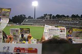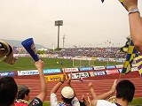 山梨県甲府市・小瀬スポーツ公園陸上競技場。個人的には、この地を訪れるのは三年振りとなりました。それは2005年8月のJ2第27節。一年でのJ1復帰を目論む強豪甲府を相手に、J2新入生の草津が終始優位に進めた試合でしたが、互いにゴールを割れないまま試合終了直前の85分。「このままドローか・・・」とタカをくくった最後の最後で甲府に「うっちゃり」的な1点を奪われ、そのまま手痛い敗戦。「悔しさ」と「虚しさ」という、重たい土産を手に甲斐路を後にした記憶が昨日のことのように蘇ります。あれから三年。時は流れ、様々なものが変化を遂げていました。関越道と中央道が圏央道で繋がり、当時工事中だったゴール裏のバックスタンドが完成したり、そして、バレーがいなくなってたり・・・。しかし、何より、一番変化を遂げたのは、我が草津のチーム力(サポーター含む)でしょう。今年5月にはJ入り後、初の連勝を果たした草津。「実績」と「自信」を手に入れた草津にしてみれば、苦い思い出などまさに過去のもの。その9割がヴァンフォーレ・ブルーに染まったスタジアムこそ、三年前とは違う草津の力を見せつけるのに絶好のステージです。 この日、アウェイチームに割り当てられたのはゴール裏バックスタンドの半分のスペース。集まった紺色の同士は、ざっと300人ほど。まさに立錐の余地もないほどの人数は草津にかける期待の大きさを表しています。好天の日曜日、交通の便も良くなり、何より草津の大きな成長こそが多くのサポーターをこのスタジアムに導いたのは言うまでもありません。 スタンドで昼食をとりながら、まずはスタメンの確認。GK1