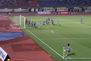 14分にはカズからのパスを受けたアンデルソンが抜け出すも、シュートはサイドネット。これらの攻撃の模様は、その都度でっかいスクリーンでスロー再生されるんだぃね。正田スタにもスクリーンほしいんねぇ。16分には相手の突進を阻んだとして、スンジンが黄紙をくらう。これまでのI本氏のジャッジだと、こっからカードが乱発される可能性もあるんで、オレはスンジンがこの試合退場になるんも覚悟したぃね。
