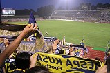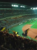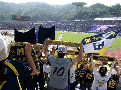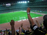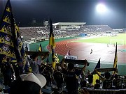 今回のC大阪戦は、平日のナイターと言うこともあって近県であれば多くのサポーターも駆けつけることができますが、なかなか平日は厳しいという人が多いと思い、応援に行っちゃうことを決意しました。が、なんとオフィシャルバスが6名しか応募がなくあえなくout!その連絡も試合2日前だったため冷や汗ものでしたが、なんとかネットで高速バスが取れてやれやれ。前日、仕事を終え20時に職場を出て21時過ぎに湘南新宿ラインにて新宿を目指しました。そして、23時30分に新宿から高速バスで向かうは大阪・近鉄難波です。朝の7時についに到着。ナイターまでは時間もあることなので、とりあえず心と体を清めないとと思いタクシーで向かうはお風呂屋さん。(←ザ・スパかなっ!なんちゃって^^;)乗った所から近かったこともあってか、タクシーの運転手さんにはお金はいいからって言われてしまい(なんて大阪の人は優しいんだろう^^)ちょっと仮眠も取りリセットしてから、地下鉄に乗って長居スタジアムへ向かうことにしました。長居には、今日を入れて3回目。1回目は一生の思い出に残るあのJFL時代の天皇杯で、ここ長居スタジアムでC大阪と対戦し金星を取った伝説の聖地。そして2回目は昨年長居スタジアムが工事中だったため、隣にある第2グラウンドにての試合でした。今回が大阪初の単独行動だったので、若干不安はありましたが、着いてみるとちらほらと草津サポーターと思われる人が到着し、総数30〜40人の草津サポが集結しました。みんなで一緒に応援しよう!と場所も決まり、みんなで横断幕も張ったりフラッグを立てたりと、試合前からサポも一致団結なムードがありまして、少人数ならではの雰囲気がありました。^^;しかし、相手C大阪のホームスタジアムは、なんと屋根付きの47000人収容!そんな多くのサポーターが集結できるスペースを持ち合わせているスター軍団・強豪チームとあれば、平日のナイターではありますが、どれほどのサポ集結するのでしょうか。(→結局、観客は5554人でした)さておき、我らがザスパ草津サポは準備もOKで試合を待つばかりです。選手紹介もあり、今回はいつもよりましてDF陣の層が厚いようです。スタメンには、草津の守護神・GK本田、右SB崔、CB「、CB田中、左SB寺田、もう一人長身のDF喜多、MF熊林、MF松下の3人で3ボランチといったところでしょうか。トップ下にはMF島田、そして2トップには、両ストライカーのFW後藤、FW高田の布陣となっています。リザーブには、GK北、DF尾本、MF秋葉、MF鳥居塚、MF山崎を控えての草津最強メンバーとなっています。そして、試合が始まりました。 試合開始早々からややセレッソに押され気味ではありますが、決して草津も浮き足立っている感じはなく、相手の出方を見ているといった感じでしょうか。また、セレッソは色んな意味でプレーもパフォーマンスも上手く、引っかかってないのに倒されたの?みたいなこともありで、どんどんFKのチャンスを得ていきます。でも最後の精度が今ひとつなのか、我ら草津の壁を打ち崩すことができません。応援している私たちも、ずっと応援歌を歌いながらこちらに向かって攻めてくるセレッソの攻撃を封じ込める一身で声を出し続けました。そして、時間が立つごとに我ら草津の攻撃も要所々々に現れ始め、サイドから上がってのクロスが入るようになったり、中央からMF松下選手のミドルシュートを打ちに出たりといった感じで、カウンター狙いが利いてきたようです。そんな中、前半30分にペナルティーエリア内に裏から抜け出したFW高田選手が相手のGKに倒されてPKのチャンスを得ました。キッカーは、草津の司令塔・MF島田選手です。短い助走から一瞬止まりフェイントを掛けて左ゴール隅にボールが吸い込まれていきました。GOOOOOAL!!! なんと、あのスター軍団のセレッソから先制点を取ったのです。凄い!!なんて冷静なシュートなんでしょうか。私たちは、狂喜乱舞する思いでみんなでハイタッチ。(*^^)vしかも、草津の選手はその後も冷静で、以前のような(点を先に取っていてもどことなく不安を隠しきれてないような)連携ミスもなく、中盤がしっかりボールを繋いでチャンスをうかがいます。その後、突然草津寄りの照明が切れ一時試合が中断するアクシデントがありましたが、何故かその後の流れは草津側にあったようで、草津の選手は必死になって走り抜く姿が今日の試合の気迫を感じさせてくれるものとなっていました。そして試合は後半へ。立ち上がり、後半2分にCKのチャンスを得ました。キッカーはもちろんMF島田選手です。左からのボールはゴールエリア内に上がり、2人の長身な選手が相手DFの選手に押されていた裏からフリーになっていたDF田中選手が頭で合わせてドンピシャのタイミングにて中央から左にワンバウンドでゴールに突き刺さりました。GOOOOOAL!!! MF島田選手のアシストでDF田中選手のゴールが決まった瞬間!(内心、今日はもらった^^;)という気持ちが湧き起こりました。が
