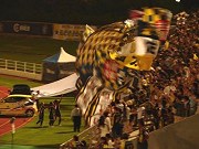 後半20分、今日は機能してなかった後藤に替え、山崎を投入。しかし大勢を変えるには至らねぇ。後半30分には喜多に替え、鳥居塚を投入。暑さで運動量も落ちてきたせいか、横浜もベテラン選手を下げフレッシュな選手を投入。ザスパサポも更にヒートアップして鼓舞。しかし双方膠着状態を脱することはでぎなかったぃね。終了間際、鳥居塚は中央やや左からミドルシュート!不運にもこれはクロスバーに当たり得点ならず。跳ね返ったところを誰か詰めていれば・・・これがこの試合ザスパが得点に最も近かったシーンだったとは。長いロスタイムが経過し、またも0−0、スコアレスドローに終わったぃね。 入場者数3万7千弱とゆう大観衆の試合だったけんど、双方決定力を欠き見せ場にちっと乏しい試合だっただけに、おそらく観客の大多数を占めただろう(点の取り合いを期待した)一見さんは、あんまおもしろくなかったんじゃねぇかな。I本主審もザスパの2枚を含めて、計3枚とカードの乱発もなく、いたって真っ当なジャッジだったぃね(疑っちゃってゴメンね)。結果、3位の夢は果たせず6位に後退。下のほうだと引き分けでも順位が上がってぐんだけんど、上位だと下がっちまうんだね。今日は横浜の術中に見事に嵌っちまって、ザスパのいいところを消されちまったぃね。今日のシュートは合計4本だったそうだぃね。攻撃の起点の島田を封じ込められたとしても、そんな状況を打破できる勢いじゃねぇと、まだ上へは行げねぇやってことだんべね。しかし久しぶりの先発だった北を始め、守備陣は良く奮闘したで。勝ち点1を得られたんは守備陣の奮闘の賜物だぃね。ただ黄紙でスンジンは次節より2試合の出場停止になっちまった。サッカーの神様は、いきなし3位にしちゃうとみんな過信すっかもしんねぇから、まっと修行しろやってとこなんかもなぁ。さらば、日産スタジアム。いつかまた再び、ここで戦うんべぇよ。【すずき@東毛】 |