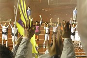 心配された雨も降らなかった。漂う鉛色の雲の間から時々覗く太陽。ただ梅雨末期とゆうんに、さほど蒸し暑くもなく、涼しい風がそよぐ正田スタ。日曜日のゲームとあってか家族連れの姿も多く、最近ではJ2屈指のスタジアムグルメを擁するようになったスタ周囲もおーかぎわってらぃね。今日は浴衣姿の女性の姿もちらほら。遠路はるばる大勢お見えになった甲府サポ様もおーかいっぺぇ。あんがとね。今日はまっさか多くの人が集まってるみてぇだぃね。いーことだぃねぇ。さて3月の第3節より、ホームでの勝利にずっとご無沙汰なザスパ。前回のホーム戦が最後の最後でトホホな結果に終わったもんの、前節の仙台戦がドローに終わったとはゆえ真っ向勝負の好試合だったと聞いてるんで、今日の相手は現在4位の強剛・甲府とはいえやってくれるんじゃねん?そして今日こそはホームで3月以来の久々の勝利をと期待は膨らまぃね。メンバーを確認すっと、出場停止あけの松下が復帰して、控えに川原が入っていること以外は、ほぼ変わらぬ「不動の」メンバー。ケガで長期離脱し、前節で復活した氏原がいなかったことが残念だったぃね。久々にホームでウジダンスやりたかったもんなー。それにしても開幕当初は全員がスタメン候補ってゆってた割には、すでに出場停止でもねぇ限りはいっつもほぼ同じメンバーだぃね。チームの財政がアレなんで層が薄しぃからとゆわれればそこまで(笑)だけんど、違がぁメンバー入れちゃうと標榜するポゼッションサッカーが巧くでぎねんっつーことからなんかなぁと思ってみたりもすらぃね・・・ 今日はオフィシャルメディカルパートナーである高山眼科さんのスペシャルマッチっつーことで、試合前に高山院長のハイテンションの檄を頂戴する。立教大学のチアリーディングのお嬢様方のパフォーマンスもまっさかご立派で華を添えてくれたぃね。草津節詠唱の中、浴衣姿のお嬢様方の持つフェアプレー旗を先導に、久々のホーム勝利を目指して試合は始まったで。 試合早々、ザスパはCKのチャンスを得たがモノにできず。逆に前半8分甲府は最初のCK。北が大きくパンチングでクリアしたんだけんど、セカンドボールをまたゴール前に蹴りこまれる。混戦の中、相手FWの大西が空振りしたんでラッキー!と思ったけんど、混戦の中ちょっと引いていたDFダニエルに渡され、地を這うシュートを見舞われる。これを再び北が右手で触って、右ポストにカツーンと当たってまたまたラッキー!と思ったが、なんとボールは内側に跳ね返ってゴールの中に・・・確かにちっと不運ではあったんだけんど、開始早々あっけなく失点、0-1。ゴール前には人数いっぺぇいたんになぁ・・・まだ時間はあるんで反撃を期待したんだけんど・・・甲府の激しいプレスで、ザスパの自慢の中盤は寸断されちまって、思うようにボールをつなげず。廣山の調子も悪りぃんだか全然ボールが収まんねぇ印象だぃね。前線の後藤・都倉にもダニエルたちがしっかりマークしてるし。甲府の前線には長身の選手が多くって田中や藤井もマークするんもまっさか大変そうなんさね。前半は完全に押されっぱなしで、シュートはほとんど打てず。唯一チャンスだったんはゴール前の熊林のFKだったけんど、いい角度に上がったんだけんど得点ならず。これ以外は「特記すべきことなし」のようなほぼ圧倒された、言葉は悪りぃんだけんど退屈な45分だったぃね。 ハーフタイムには再びチアのすんばらしいパフォーマンスが披露され、後半開始。メンバーの変更はなし。次の得点がどっちになるんだんべか。いっつも失点する後半の立ち上がりがキモだぃなーと思ってたら・・・都倉のヘディングシュートは惜しくも枠の上へ。後半6分、左サイドを崩され防御及ばず、クロスに反応した甲府・FW森田にやすやすと追加点を献上しちまった。これで、0-2。今日のデキからみっと、はぁ致命症にも近ぇ失点。こりゃなっから苦しくなったなぁと思ったわずか3分後の後半9分、都倉から廣山のワンツーで都倉に渡り、GOOOOOAL!!! これで1-2!都倉の3試合連続ゴール!前線で潰れ役になった後藤もよかったぃね。これで1点差!まだ時間は十分にある、一度は苦しくなった勝ち点奪取の可能性が見えてきたで!が、こっからがうまくいがなかった。甲府のプレスは更にきつくなり自慢の中盤は征圧されなかなかゴール前にたどりつけなかったし、せっかくサイドを上がってのクロスに誰も走ってなかったり、やっとのこと敵陣までボール回しながら攻め入っても、シュート打たずボールこねくり回してるうちにパスミスでかっさわられて、一転ピンチに陥ったり・・・となんだかなぁの連続のザスパ。片やボールを奪ったらシンプルにゴール前まで運んでシュートまで持ってぐ甲府。後半21分に後藤から小池、後半31分には佐田から高田、しかも廣山を右サイドに下げるという仰天のオプション!(オレは廣山を替えるんじゃねぇかと思ってたんだけんど・・