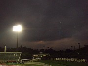 各地に大雨を降らした台風9号が日本に向けて北上しつつあった月曜平日のナイトゲーム。不安定な天気でこの連日群馬も大雨、前日日曜の宇都宮の栃木vs横浜の試合も雷雨に中止になってたぃね。天気予報サイトで見っと、ナイトゲームの試合時間は時間20ミリ!とかまっさかすんげぇ豪雨が予想されてたぃね。今年の夏はまーず狂ってらぃな。逆にそんな豪雨の中の試合ならいっちょ経験して後世の語り草にしてやんべぇ!と思って逆に燃えちまったオレもなっからバカだぃねー(笑)正田スタに到着すっと、豪雨の予報がされてるんに、家族や友人、職場の冷てぇ視線に耐えつつ、ずぶ濡れ上等で正田スタに馳せ参じた2千人余りの愛すべきザスパバカたち。もちろんこんな時に遠路はるばる群馬までやってきた岡山サポにも深甚なる敬意を表するで。今日の対戦は、本年J2参入組のファジアーノ岡山。正田スタに初見参。岡山は、そのチームへの関心とゆうよりは、2005年のザスパの監督を務めた手塚氏が監督が率いてる点に注目だぃね。思えばザスパのJ初年度の2005年は、Jの洗礼、揃わぬ戦力、脆弱な経営体制、数々のスキャンダルなど苦難に満ちた年だったけんど、そんな悪条件の中、監督として結果を求められた手塚氏はなっから大変だったんべなぁと、今になってみるとつくづくお気の毒だったんじゃねぇかと思うんさ。そういやあの頃、手塚氏は惨敗の試合後でも選手と一緒にサポータの前に挨拶しに来てくれたことが何度もあったんべ?今思うとすげぇ器のでっけぇ監督だったんじゃねぇきゃ?って思うよ。 さてそんな手塚氏の率いる岡山との対戦。ザスパは都倉が2試合出場停止中、後藤が負傷っつーことで、今日は高田、小池のツートップ。GKは常澤、DFは寺田・喜多・田中・佐田、MFは廣山・熊林・櫻田・松下、サブは北・藤井・三澤・山崎・佐藤。後藤の戦線離脱、氏原も都倉と売店でサイン係orzになってるんで一気に手薄になっちまったFWとして「快速」とのウワサの三澤がいつ投入されるんかも期待だぃね。幸いにも雲は低く立ち込めてるけんど、全然降んねぇみてぇだ。どこが20ミリの豪雨なん?(呆)しっかしおーか湿度が高けぇんし、雨台風なんか風はほとんどねぇし。こりゃまるで蒸し風呂だぃな。じっとしてるだけでも汗が出てくらぁ。走り回らなくちゃなんねぇ選手たちの体力が心配だぃね。ホームで13戦勝ちに見放されてるザスパ、今日こそ勝利の草津節を唄うことがでぎるんか?第1クールのアウェイで0-3で快勝した手塚岡山との一戦が始まったぃね。 試合早々からザスパは積極的に攻める。早々に小池のシュート。前半11分には飛び道具・松下の弾丸ミドル。これをGKがはじいて得たCK。ショーコーナーからパスを受けた櫻田がシュート!、そして小池がこれに触れて決まったみてぇだ。GOOOOOAL!!!(と書いてはみたけんど、B-H北からだと遠くって、混戦の中、小池が決めたんは正直全くわかんなかったぃね)先取点、1-0!この攻勢ならまだまだ追加点は奪えるで! その後も攻勢を続けるザスパ。まるでこれまでの試合の分もまとめて打っちゃうんべぇ!みてぇなシュートの雨アラレを岡山ゴールに浴びせる。ディフェンスラインも高く取っていて、岡山のワントップの元水戸の西野への縦パスはことごとくオフサイドになってたぃね。ザスパが圧倒的に攻め続けた前半。しっかし攻めても攻めても2点目を奪うことがでぐぎねぇ。佐田のクロスに高田のいい角度のヘッドも相手GKに止められ、そのまんま前半が終わっちまう。 後半開始。岡山・手塚氏は一気に選手2人を替えてくるという大胆な采配。開始早々に佐田がミドルを放ってまたもザスパの時間になるかと思いきや、後半3分ザスパCKからのカウンターから、その替わった背番号48(!)の青木がボールを受け右サイドを上がると、寺田がペナルティエリア内で倒してしまいPKを献上。寺田は黄紙で次節累積で出場停止。このPKを西野にきっちり決められ、1-1、同点。またも後半立ち上がりに失点するとゆういつもの悪りぃパターンが露呈。しっかし時間はまだまだある!と思ったけんど、後半は前半とうって変わって岡山の攻勢に晒され続けることになったぃね。台風が持ち込む湿った空気、無風に近けぇスタは蒸し風呂状態。互いに消耗戦となって、時間と共に見た目にもザスパの選手の運動量は徐々に下がっていって、岡山に主導を握られる。起点の松下にプレスを掛けられ、サイドの駆け上がりを封じられたりと、ますます手塚氏の弄した策に嵌る。途中バーを叩くシュートを浴びたり、鋭いカウンターを何度も何度もくらったりして失点の危機はいくつもあった。もう少し岡山に精度と決定力があったら一体何点取られてたんべか。後半20分には熊林から山崎、後半37分には(まだまだ走れてたような気もしたけんど)小池から佐藤穣と交代したが全く流れはかわらず。後半43分には櫻田に替え、Jリーグデビューとなる三澤を投入したけんど、気合いが空回りしたんだか快速