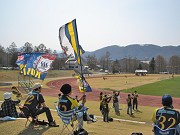 2年ぶりの嬬恋開催となった、2009年サテライトリーグ初戦。平地ではすでに葉桜ですが、嬬恋へ向かう道には数多くの桜が咲いていました。満開に咲き誇る桜が、この日を祝っているかのようです。会場となる嬬恋村運動公園陸上競技場は小高い山を少し登ったところにあります。雲ひとつない快晴なのはいいのですが、高地ゆえ直射日光が容赦なく芝と人間を照りつけます。まるで初夏のような暑さですが、時折吹く心地よい風でここが高地であることを思い出させてくれます。いつもより駐車場が空いているのが気になりますが、観客席に向かうとそれなりに人が集まり始めていました。U-23ブログなどを見て予想するに、きっと今日はU-23のメンバーで挑むのだろう…とか・な・り!期待しておりました。その期待は現実のものとなりました!スタメンはGK北/DF冨田・有薗・成田・星野/MF市川・清水・宮下・古矢/FW森川・藤崎(斜体がU-23新加入選手です)つまり、トップの北選手を除いた10名が全てU-23。欲を言えば北選手でなく寺田(一太)選手を最初から使って欲しかったのですが、その後のゲーム展開を考えると最初は北選手「だから」良かったかな、と今は思っています。 今日の相手はJ1モンテディオ山形。昨年までは同じステージ(J2)で戦っていたはずなのに最近の快進撃を耳にしているからか、非常に格上の相手に思えてしまいます。 さて、サテライトリーグ初戦では過去4年間1度も勝利していないザスパ。初戦独特の緊張なのからか、それとも「徐々に成長していくチーム」の初期ゆえんか。この日も序盤はDFラインが落ち着かず、度重なるピンチを迎えることになります。山形は中盤でしっかり組み立て、サイドの選手や前線の選手にボールを供給していきます。ザスパは、主に左サイドの宮下選手を起点とした攻撃を展開していきます。立ち上がり、この左サイドからの攻撃で藤崎選手が何度もシュートを打とうと中へ斬り込んでいくのですが、山形DF陣の強固な守りによって阻止されてしまいます。藤崎選手は今年で3年目。小柄ですが体つきは年を追う毎に逞しくなり、自慢のスピードには磨きがかかる一方です。この日も、果敢に突進していく彼ならではのプレースタイルに、会場からは何度も感嘆の声が上がりました。試合開始10分を過ぎると、徐々に中盤でボールを支配できるようになってきました。今度は右SB冨田選手を起点とした攻撃を仕掛けます。15分には中盤で宮下選手が奪ったボールを最前線の森下選手へ、そこに右サイドから冨田選手が一気に駆け上がります。森川選手が出したボールはラインギリギリでしたが、冨田選手、なんとかラインに残ります。そしてワンタッチでクロスを上げるのですが、残念ながら失敗。しかし、キャプテンの闘志溢れる姿勢が徐々にザスパイレブンの緊張を解いていきます。グチャグチャだったDFラインも、経験豊富な北選手の的確なコーチングにより、徐々に落ち着いてきました。 しかし前半22分、一瞬の隙を突かれ、山形に先制点を奪われてしまいます。私もカメラを構えていたからか、気がついたら点が入っていて…(とほほ)。この先制点で勢いづいた山形が、徐々にペースを取り戻していきます。ザスパは山形の攻撃に対し、常に多くの選手が自陣に戻り、守備に入っています。しかし、山形は「何人いようが関係ないね〜♪」という声が聞こえんばかりの、余裕の攻撃。ちっくしょー、格上ぶりやがって(いや、実際格上なんですけど)。ここがやはり選手個人個人のスキルの差なのかもしれません。 けれどもそんなことはザスパの選手達も十分に承知しています。ザスパが山形に勝つのに必要なのはチームワークと「強いキモチ」。30分を過ぎた頃、FW森川選手が豪快にシュートを放ちます。残念ながらGKの正面だったのでキャッチされてしまいましたが、これが反撃の狼煙となります。前半終了するまで、再びザスパに流れが転じたのです!右サイドで冨田選手が斬り込み、あんなに小柄な藤崎選手がポストプレーで相手に競り勝ち、サイドを駆け上がってきた冨田選手にもう一度ボールを渡し、そのままシュート。左サイドの星野選手から清水選手へ繋ぎ、中盤の底から走り込んできた市川選手がヘッドでゴールを狙う。今年のU-23は右から左から、バランス良く実に多彩な攻撃を繰り返します。そして仲間うちで非常に盛り上がったのがDF成田選手の頑張り!!!昨年は後半途中から電柱系FWとしての投入が多かったのですが、今日はセンターバックとしての先発出場!しかも度重なるピンチをヘッドで次々とクリア、相手とも競り勝つ場面が多く見られました。高さのない今年のU-23において、180cm台後半という彼の高さは武器となります。守備陣の踏ん張りと、結果こそ出なかったものの攻撃陣のガッツで、前半は相手に追加点を奪われることなく1点のビハインドでハーフタイムを迎えました。相変わらず強い陽が射すなか、後半開始。ザスパも山形も選手を交替しました。