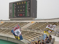 まだ10月も半ばだというのに(そして3ヶ月ぶりのサテ戦だというのに)、2009年度のサテライトリーグ、ザスパにとっては今日が最終戦です。会場へ向かう道では紅葉の名所・吾妻渓谷に加え、ニュースなどで何かと話題になっている八ツ場ダムの工事現場や資料館にも大勢の人が!そんな観光ムードは大津の交差点を左に曲がると徐々に払拭され、やがて会場に到着。相手が浦和レッズということもあり、駐車場は既に多くの車で埋まっていました。さらに双方のサポーターで賑わっていたのがピッチ脇の売店!嬬恋名産の採れたてキャベツが1玉100円!その他新鮮野菜がいっぱい!!このような形での地元とのコラボはすごく良いと思います。ザスパはGK伊藤/DF冨田(CP)・成田・高櫻・星野/MF飯山・古矢・杉本・清水/FW宮下・森川、といつもの4-4-2です。トップから伊藤選手と杉本選手が合流、控えを含め、残りは全てU-23の選手です。一方の浦和はスタメン11人中2人がユース。控えの4選手は全てユースです。しかもスタメンには梅崎選手や平川選手といった名の知れた選手がいてビックリ!浦和にとっては調整の意味が大きい試合だと察しますが、ザスパにとっては今日もアピールのための大事な一戦!!同じ釜の飯を食ってきた有薗選手が9月末にJデビュー→現在も試合出場を続けているだけに、ゾノに続け!と選手もサポーターもモチベーションが高まります。 ザスパは立ち上がりから浦和のハイレベルな個人技に翻弄され、苦しみます。が、浦和ユース出身の左SB星野選手がサイド突破から強引なシュートに持ち込んだのをきっかけに、ザスパは苦しみながらも攻撃のチャンスを伺います。しかし16分、相手ユース選手に中央突破を許し、そのままシュートされて1点を失います。それでもセカンドボールを拾い、2TOP+右SH杉本選手にボールを繋げようとがむしゃらに戦うザスパ。なかなか相手陣内に行けない時間帯が続きますが、32分、ようやくビッグチャンスが訪れます。飯山選手→冨田選手の元・FC東京ユースホットラインから、最前線に走り込んだ宮下選手にボールが渡りシュート→左ポストに当たりそのままGOOOOOAL!!! 1対1の同点で後半へと折り返します。後半が始まって間もなくのこと。浦和DF橋本選手が「危険な行為」とやらで一発レッド、退場を命じられます。10人になった今がチャンス!と言いたいところですが、チャンスどころかピンチが続きます。サイド攻撃も封じられ、同点ゆえに相手も前半以上に激しく当たってきます。双方次々と選手を代え、追加点を奪おうとするもスコアは変わらず。浦和の選手たちは皆身長が高いため、ちびっ子軍団のザスパU-23は空中戦でなくスピード勝負を仕掛けました。最後の最後まで全員が力を振り絞って戦ったものの、1対1のドローで今季最終戦を終えました。下を向いたままうなだれる浦和の選手たち。一方、ザスパの選手は悔しさを滲ませつつも下を向くことなく、堂々と前を向いていました。 ピッチでの挨拶を終え、数多くのサポーターが待つエリアへやってきた選手たち。たくさんの拍手と激励の言葉、そして今季サテ戦最後のザスパコールが選手たちに送られました。その後にはコールリーダー氏から今季最後のご挨拶。U-23の温かい応援の雰囲気は彼のリードなしでは始まりません。彼の挨拶にも大きな拍手が送られ、コールが送られます。それから少しして、成田選手がサポーターの前に登場。「今日で終わったわけではありません。トップ昇格のためにまだまだ頑張ります!」無念の負傷退場だったにもかかわらず、アイシングをしながら挨拶に来てくれた成田選手。その気持ちが非常に嬉しく思います。確かにまだ10月。J2のシーズン終了まであと1ヶ月半もあります。公式戦は終わりましたが彼らの戦いは未だ道半ばなのです。今年から経費削減の一環で寮の食事がなくなるという、アスリートにおいて一番大事な「食」の面で苦労したU-23。公式戦では芳しい結果が出ませんでしたが、今年も彼らはがむしゃらにピッチを走り続け、ボールを追い続けました。シーズン序盤と比べ、どれだけ成長したことか!今年もそんな彼らの成長の過程を追い続けることができたことにも感謝したいと思います。毎年選手は入れ替われど、かの地に息づく「草津魂」よ、永遠なれ!【きくり∈東毛】 |