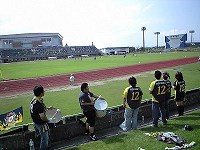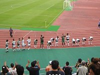今日のサテライトは、熊谷スポーツ文化公園陸上競技場でのアウェイゲーム。ザスパトップチームが何度かお世話になったスタジアムです。サテライト、しかも熊谷開催にもかかわらず、たくさんの赤いひとたちが開場を待つ列を作っていました。公式記録によると入場者数はなんと3、208名!恐らく3、000人はレッズサポ。流石です。ザスパのスタメンはGK:常澤/DF:冨田、川原、有薗、星野/MF:秋葉(CP)、玉乃、佐藤大基、佐藤穣/FW:杉本、三澤(←左SBじゃなかったん?)。斜体がU-23、4名。残り7名はトップ。スタメンはトップ中心の構成ですが、ベンチの5選手(GK寺田、DF成田、MF宮下・清水、FW 藤崎)は皆U-23。ベンチに入れなかった残りのU-23の選手たちは悔しい想いを胸に、スタンドから仲間の闘う姿を見守ります。 前半は一言でいえば「凡戦」。ザスパは完全に空回り。選手のモチベーションの高さは見えるのですが、それがチームとして機能しません。そんななか、U-23主体の守備は立派でした。トップの川原選手が軸となったラインコントロール。サイドバックの星野・冨田両選手も、上がりたい気持ちを抑えて守備に徹します。冨田選手がこの日最大の脅威・FWセルヒオ選手と1対1になり、何もさせなかったときはザスパ側スタンドから拍手が起こりました。センターバックの川原・有薗両選手は高さを活かしてレッズにとって「大きな壁」となります。また、攻撃では杉本選手が少しでもチャンスがあればシュートを放ちます。攻撃の基本「最後はシュート」を忠実に守っています。彼の存在感は抜群のものがありました。前半最大のチャンスの起点は佐藤穣選手から。杉本選手へピンポイントの縦パスを出します。杉本選手、すぐさまシュートを打つのですが残念ながらボールは枠のわずか右へ…。しかし幸いなことにCKのチャンスを得ます。キッカーは玉乃選手。このチャンスを逃すまい!と一丸となった選手たちの努力もあり、相手陣内での攻撃がしばらく続くのですが、残念ながら得点なりませんでした。その後はお互いに守りの隙を突いてゴールを狙っていくのですが、なかなかシュートへ至らず。自らのミスや仲間同士での意思疎通不足が両チームにあったと思います。次第に苛立つレッズイレブン。思うようなプレーができず戸惑うザスパイレブン。結局前半は0-0で後半へ折り返します。うーんなんだか消化不足な試合。後半は全員がエンジン全開で戦ってほしい! ザスパは選手交替なしで後半に突入。相手GK交替直後の今こそチャンス!だったのですが、チャンスどころかピンチに…。どうやらレッズが本気モードに突入したようです。レッズの攻撃に耐える時間が多くなっていくなか、後半8分、ザスパが1枚目の交替カー ドを切ります。自慢の俊足を活かしきれず空回りしていた三澤選手に代わり、U-23のエース・藤崎選手が入ります!この交替が見事的中!!フレッシュパワーの投入で試合の面白みが一気に加速しました。ザスパはU-23ツートップ(杉本・藤崎両選手)がと・こ・と・ん!チェイスし、レッズDFラインが崩れ始めます。ただし相変わらずレッズのカウンターは脅威です。ですが、シュートを打たれても、スパイダーマン・常澤選手がゴールを死守します。今日の常澤選手はなんだか神がかってます♪ 先制点を奪えれば勝てるのでは…そう思い始めた後半16分、左サイドからの攻撃。佐藤穣選手がラインギリギリでボールを折り返します。ゴール前に突進してきたのは藤崎選手。武馬!!シュート!!!と叫ぼうとしたときのこと。このマイナスのパス、どうやら相手選手に当たり、思いがけない先制GOOOOOAL!!! 結果としては藤崎選手が囮となったことで生まれたオウンゴールでした。一瞬静まりかえったスタジアム内に、ザスパサポーターの歓声だけが響き渡ります。そんな先制直後でも決して気を抜かない今日のザスパ!数分後には杉本選手と穣選手のワンツー→GKが前に出てきた絶妙のタイミングで、今度は杉本選手がラインギリギリ=角度のないところからのシュート!2点目もらった!!と確信したのですが、無人のゴールに走り込んだレッズDF堀之内選手が必死のクリア。さらにそのこぼれ球を玉乃選手が豪快にシュート!勢いのある波状攻撃でしたが、惜しくもゴールならず。さらにその数分後、再び穣選手から柔らかいパスが出ます。これを繋げたのは玉乃選手。これとないスーパーチャンス、ここは玉乃選手のテクニックに期待!しかし彼が蹴ったシュートはあまりにも力がなくへなへなへなとゴールの外へ…。後半になって勢いが出たとはいっても未だ空回りしている選手が数名。相手チームと口論になる選手や、ほとんど存在が消えている選手。それを見越してか、終盤にかけて選手交替が続きます。後半28分には佐藤大基選手に代わり清水選手が入り、徐々にU-23の割合が高くなっていきます。が、ここで1つアクシデントが…。冨田選手が足を痛めます。一度はピッチに戻ったのですが、大事をとってか宮下選手に交替。失