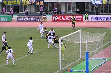高崎からは、山が一つも見えません。いえ、普段は北方の赤城から左へ巡らすと小野子・子持〜榛名〜浅間〜妙義と上州を縁取る山塊が見えるんですが、今日は霞の彼方です。それどころか、近くにあるはずの高層マンションや市庁舎すらベールに隠れて見えません(スタジアムへの道中、県庁舎も直近まで見えませんでした)。西寄りの強風に乗って遙か大陸内部の砂漠からもたらされた黄砂が原因のようです。花の粉に加えて黄色い砂とは…。春先はキツイです(笑)。先週注文しておいた今年のオーセンティックユニフォームを引き取り、いつもの如く縁日状態の屋台村でスタジアムグルメを物色、バックスタンドの定位置へ陣取ります。しかし、風が強いです。そして寒いです。まあ、雨が降らないだけましですが。今日の試合も風を計算しないとえらいことになりそうだぃね。 今日の対戦相手は横浜。今季のチームは、大幅な陣容変更で昨季とは全く異なるチームに変貌しています。その端緒は赤いキャップでお馴染みの前鳥栖監督・岸野監督招聘に始まります。詳しい経緯は知りませんが、結果として横浜には鳥栖で活躍していた4選手とコーチが移籍しました。移籍強化はこれに止まらず、川崎から久木野選手、G大阪から寺田選手、仙台から関選手とサーレス選手、極め付けは東京Vから大黒選手を獲得しました。草津サポには都倉選手が得点ランキング2位となったことに目を奪われていて知らない人も多いと思いますが、その都倉選手の次点3位だったのが誰あろうこの大黒選手です。日本代表に選抜されての活躍は知らぬ者無しです。警戒するにこれほどの要注意人物はいないでしょう。名軍師に率いられた今年の横浜は侮りがたいとシーズン前から思っていましたが、はたして開幕2連勝。草津はここが踏ん張りどころです。 その横浜と対峙する草津のスターティングメンバーは次の通りです。GK:21・常澤選手、DF:16・佐藤選手、2・戸田選手、18・御厨選手、7・佐田選手、DMF:6・櫻田選手、30・松下選手、OMF: 25・山田選手、27・杉本選手、FW:8・ラフィーニャ選手、9・高田選手、リザーブメンバー・GK:22・北選手、DF:13・有薗選手、20・柴田選手、MF:10・廣山選手、14・熊林選手、FW:11・氏原選手、19・後藤選手。ここ2戦の内容を見て、ベンチサイドは少々テコ入れを図ってきました。まず、途中交代ながら良い働きを示していた山田選手、ラフィーニャ選手、杉本選手を先発起用し、DFラインでは御厨選手を先発に登用しました。フロントラインが一新されたことによる効果がどれ程のものかに注目が集まりますが、変更のなかったDMF2名とSB2名の活躍こそが、実はこの戦の鍵と睨んでいます。草津の攻撃のキモがボランチにあることはもちろんですが、攻撃に厚みを持たせられるか否かは、SBがどれだけ攻撃参加できるかに懸かっていると言っても過言ではありません。前2戦のように引いたラインに張り付いて引き摺られているようでは、前線の構成を変えても効果はあまり期待できないですからね。 選手がピッチに散り、センターサークルにボールがセットされ、アウェイ側タッチライン沿いに見慣れた赤帽子が、ホーム側ベンチ脇に黒いスーツがそれぞれ立ち、第3節開戦です。試合が始まって草津のフォーメーションが判明しました。FW登録のラフィーニャ選手がサイドハーフとして山田選手と中盤の攻撃起点を担当しています。MF登録の杉本選手は反対にFWとして高田選手と2トップを組んでいます。もっとも、この4選手に関してはポジションに拘ってプレイをする方ではないので、流れの中で位置取りが変わってくるでしょう。序盤の草津は上々の入り方と言って良いでしょう。キックオフ直後に高田選手が相手からボールを奪うと、積極的にミドルシュートを放ちます。ここ2戦では見られなかったゴールへ向かう気迫が感じられて実にGOODです。山田選手の運動量と前へ向かう姿勢は相手への圧力となり、中盤での陣取りでは草津が先手を取りました。ラフィーニャ選手も柔軟な体捌きで横浜陣内深くへと攻め込んでゆきます。杉本選手も前を向いてのプレイこそなかなかさせてもらえませんが、キッチリボールをキープして前線でのためを作ってくれています。あとはクロスボールとフィニッシュだけなんですが、ここから先がね、なかなか上手くゆきません。互角以上に渡り合っている流れを大事にして是非とも先制を、と願っていたんですが、情勢はワンプレイで大きく傾いてゆきます。前半7分、草津ハーフ深い所からの横浜・右タッチラインからのスローインでした。スローインボールを足下に収めた柳沢選手はドリブルで右コーナーまで駆け上がると、スピードのあるクロスボールをゴール前へ蹴り入れます。ここに飛び込んだのは大黒選手。駆け込む勢いのままボールを蹴り込み、横浜先制。今のクロスは狭い所を良く通したねぇ、いや凄い。それに反応した大黒選手、やはりただ者ではありません。相手が凄いの