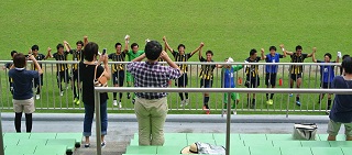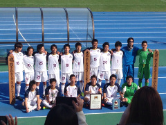 待望の先制点に喜びを爆発させる選手たち。ユニを脱いでしまった小野選手は黄紙をもらってしまう(苦笑)。さらに追加点を狙うザスパ、後半33分にはゴール前で小さいフッキ(吹田選手)と大きいタクジ(白井選手)が同時に裏に抜け出し、相手が対応に追いつかず。ボールに反応したのはタクジ、ど真ん中から豪快に打ったシュートが決まりGOOOOOAL!!! 2対0!習志野高校出身のタクジ、地元での凱旋ゴールにザスパ応援席は大盛り上がり!試合終了直前、アンドレ(今井選手)が転倒、その場で×が出て選手交代、急造4バックという非常事態が発生。だが、そもそもの人数が少ない今年のチャレンジャーズ、ふだんから「1人2ポジション」を課せられているとのこと。残り時間が僅かだったこともあり、そのまま2対0で試合終了。関東大会3戦、無失点で優勝を飾りました!!! 次は11月1日から東京都内で行われる全国大会。決勝まで進出するとなんと4日連戦…!J昇格前のザスパもビックリのハードスケジュールではあるが、全国にザスパチャレンジャーズ旋風を起こせることを激しく期待!! | |||||||||||