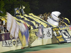 天皇杯3回戦、浦和駒場スタジアムでJ1首位の浦和を撃破するジャイアントキリングをを現場で見届けたオレは、この苦節10年の艱難辛苦の想いの反動で、なっから気がでっかくなっちまって、4回戦の名古屋戦も行ぐんべぇや!と心に決めたぃね。早速、ザスパ公式バスツアーに応募してみたんだけんど・・平日の夜の名古屋での試合っつーことで、最小催行人数に満たねぇってことでツアーが中止(´Д`) はぁ勢いで夏休みを9月10日に取っちっまったんで、行ぎは新幹線、帰ぇりは夜行バス(シルクライナー)の強行日帰り日程を組んでみたで。(翌、木曜日はそのまんま勤務の強行軍)名古屋といえば実は2007年の天皇杯・名古屋戦で日帰り遠征(こん時はデーゲームだったんで往復とも新幹線)したことがあるんだけんど、まさか人生2度目の名古屋日帰り遠征をすることになるとはねぇ。2007年の名古屋には元日本代表の楢崎や藤田や楢崎や玉田がいて、今の日本代表を牽引するあの本田も出てたぃね。(あん時は松浦のヘッドで楢崎から1点を奪ってうれしかったぃなぁ・・・1-3で負けたけんどね)あれから7年の月日が過ぎ、名古屋は元日本代表の楢崎がゴールマウスに健在、田中マルクス闘莉王はじめ、玉田、藤本、永井ら、オーストラリア代表のケネディ、柏から移籍したレアンドロ・ドミンゲスなどそうそうたるメンバーが名を連ねるJ1の強豪。J2・現19位がどこまで食らいつけるんか・・よしんば再び奇跡のジャイアントキリングを起こし、あの2004年以来のベスト8を果たしてぇところだぃね。しっかしあの天皇杯浦和戦以来、ケガ人が続出、リーグ戦も3連敗とチーム状態は一気に低迷しちまったんだけんど・・・ 新幹線で名古屋へ。せっかくなんで熱田神宮に寄り、必勝祈願してから、7年ぶりの瑞穂公園陸上競技場へ。ゴール裏には平日夜にもかかわらず名古屋まで馳せ参じた約50名余のザスパバカが集う。スタメンを確認すっと、GK富居、DF小柳、有薗、クォン・ハンジン、瀬川、MFに初先発の久富、加藤、黄誠秀、小林、FWにこれも久々先発の野崎、宮崎、控えにGK北、DF黄大俊、青木良、MF金沢、カイケ、FWにエース平繁、U-22選抜で武者修行中の大津・・・って、オイオイ!浦和を破ったジャイアントキリングの立役者たち、青木孝、D・ロビーニョ、そしてエデルがベンチにもいねーじゃねぇきゃ!なんだかなぁ。対する名古屋は楢崎、矢野、田中マルクス闘莉王、レアンドロ・ドミンゲス、玉田、永井らが名を連ね、ベストに近ぇ手加減一切なしの錚々たるメンバー。名古屋は戦力を落とすんでは?との下馬評だったけんど、戦力が落ちたんはザスパの方だったぃ(´Д`) でももしこれでザスパが勝ったら、正真正銘ジャイアントキリングだんべ!久々の出場の面々におーか張り切ってもらうんべぇや! 瑞穂運動公園陸上競技場の空に7年ぶりの草津節が響き、キックオフ!ザスパは登録では4-4-2だが、瀬川、久富が両SHの5-4-1のようだで。名古屋の攻撃を徹底防衛し、後半エース平繁や秘密兵器のカイケを投入して、一気のカウンターで勝負を決しようっつー作戦だんべな。前半は小林、宮崎の運動量、野崎の覚醒に期待するか。しかしさすがはJ1の名古屋。個々の能力が高すぎ。DFの体の入れ方、ボール奪取能力の高さ、玉田・永井の速攻、レアンドロ・ドミンゲスの針の目を通すような鋭いパス、そしてクロスやロングボールを跳ねっ返す闘莉王の打点の高ぇヘッドと迫力・・・セカンドボールはことごとく奪われ、ザスパはバイタルエリアに侵入もままならず、ボールをかっさわられて、レアンドロ・ドミンゲスのキラーパスで一転の窮地、DF陣と富居が執念で跳ね返す・・・の繰り返し。玉田と永井が本調子だったら、前半の内に勝負は決まっていただんべ。前半9分の右サイドの久富からのクロスに合わせた小林のゴール右隅への絶妙なヘッドは楢崎の攻守に阻まれちまったけんど、これが前半唯一の得点のチャンスだったぃな。引いて守るザスパの攻撃チャンスはほとんどなく、目の前でザスパゴール前で繰り広げられる名古屋の猛攻。引いてスペースを消し、なんとかひたすら耐え凌ぐザスパ。何とか前半をスコアレスで折り返す。よく頑張ったザスパ!後半勝負だ! 後半開始。ザスパは4バックにするもうまく噛み合わず、元の5バックへ。名古屋の猛攻が続く。ずーっと遠い名古屋サイドで攻防が繰り広げられ、ザスパ陣内にめったに来ねぇし。名古屋の攻撃に防戦一方のザスパ。そんな中、最初に動いたんはザスパ。後半60分、精彩を欠いてた加藤に替え、金沢。ベテランの経験値に期待だ。名古屋はその直後、決定力を欠いてて助かってた玉田と矢田の2枚を一気に替えた。すると最終ラインにいた闘莉王が最前線左へ上っていった!FWとなる闘莉王も脅威だが何よりDFラインの要の彼がいなくなった今が一気の勝負所だんべ。ここで後半68分、野崎に替え、切り札のエース平繁を投入。これで「エース平繁で1点を奪って再度ジャイアントキリン