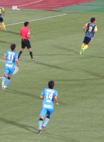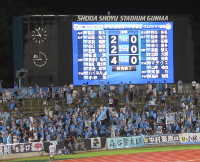 今年の天皇杯は、3年ぶりにJ1クラブとの対戦。しかも、公式には初対戦となる、川崎フロンターレ。正田醤油スタジアムにフロンターレが初めて来るということで、ザスパサポーターの中でも話題となっていた。平日開催ということで、集客条件は厳しい中、3,000人超の観衆が訪れ、フロンターレのサポーターも数多く見られた。前橋は15時頃に激しい雷雨に見舞われ、道路が冠水するところもあったが、試合前には天候も落ち着き、無事開催となった。ザスパはリーグ戦から一部選手を入れ替え、GK牲川、3バックは舩津、川岸、市川。右WBは高橋、左は石田、ボランチは鈴木崇文と岡庭。2シャドーに高井と山岸、トップには岡田が入った。古巣対決となるはずだった松下、盛田のベテラン組はベンチにも入らず。ケガで欠場中のカン・スイルもまだ戦列に戻れない。一方川崎のスタメンには、田坂、森本、家長らに加え、チームの顔と言える中村憲剛も名を連ね、スタジアムからもどよめきが聞こえた。ベンチには、小林悠や大島僚太も控えている。 いつものリーグ戦とは違い、淡々と選手紹介や選手入場が行われ、いよいよキックオフ。ザスパサポーターは、過去幾度となくジャイアントキリングを成し遂げた経験から、上位クラブとの戦い方を知っている。できるだけ0-0の時間を長くし、相手の焦りを誘い、少ない好機を確実に決める。今日もそんな戦いを期待していたのだが、5分も経たないうちに、プランは崩れ去ってしまった。いつもの高いDFラインの裏にフワッとしたボールを入れられ、抜け出た森本にプレッシャーが遅れる。ブロックに入ってはいたが、シュートまで持って行かれ、そのまま牲川の脇を抜かれて、ゴール。あまりにもあっさりとした先制点を川崎に奪われる。リーグ戦でも無得点が続くザスパ。いきなりのビハインドで、試合を難しくしてしまった。その後も中村憲剛を中心とした川崎のパス回しに翻弄され、何度か決定機を作られるが、ゴールを割らせず、逆にザスパもサイドからチャンスを作る。左サイドから攻め込み、市川の上げたクロスはいったん流れるが、そのボールに走り込んだ高橋がダイレクトで合わせる。低い弾道のシュートはゴールマウスを捉えていたが、相手GKに弾かれてしまった。川崎が中盤で入れる縦パスに狙いを定め、一時は五分の状態に立て直すことができたが、前半終了間際に追加点を奪われる。左サイドから攻め込まれたザスパ、最後は右バイタル付近で受けた田坂に誰もプレッシャーをかけられず、そのまま左隅にシュートを決められ、0-2。確実にシュートを決めきる川崎との差が明確になった。