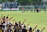初めまして。中学・高校の先輩であるすずき@東毛さんよりライターを仰せつかった、筆名・山本五十八@太田と申します。地域リーグ時代からザスパを応援しており、ザスパへの愛着は人一倍あると自負しています。どうぞよろしくお願いします!さて、まさに五月晴れの5月12日、敷島公園サッカー・ラグビー場で開催された、第32回群馬県サッカー協会長杯サッカー大会決勝戦(天皇杯JFA第98回全日本サッカー選手権群馬県代表決定戦)、ザスパクサツ群馬vs tonan前橋戦を観戦してきました。この試合、天皇杯県代表を決めるだけでなく、サッカー協会長杯を争うタイトル戦の決勝でもあるんですよね。ってことは、勝てば優勝杯を掲げる選手たちを観ることができる、めったにない機会であり、Jリーグ参戦以来、タイトル獲得とはほぼ無縁となっていたザスパにとっても、久々の戴冠を賭けた大一番となりました。 さて、リーグ戦に挟まれて開催されるカップ戦の最大の楽しみといえば、ターンオーバーにより、リーグ戦の出場機会が少ない選手たちの活躍を観られることでしょう。この試合も、先発は普段のリーグ戦とは顔ぶれがかなり異なるものとなりました。FWは永藤、大久保の2トップ。MFは岡庭、出岡、松下。DFが川岸、坪内、阿部、中村、一柳。GKは常澤でスタート。 試合は前半、ザスパが押し気味で進みましたが、tonanが前半17分、セットプレーからマルコス アウグスト ロペスのゴールで先制。ちなみにアシストは元ザスパの田中淳。やはりザスパはDFの強化が急務か。試合はちょっと嫌な雰囲気に。そんな雰囲気を吹き払ったのが、FWとして先発起用された永藤。前半20分、ゴール前に自らドリブルで持ち込み、豪快に蹴りこんだシュートがゴールネットに突き刺さりました。GOOOOOAL!!! 正直、こういうゴールが見たかった。今季のザスパ、ゴール前に迫りながら、安易に味方にパスしてチャンスを逸してしまうシーンばかり見ていた気がするので、この永藤のゴールはとても新鮮で、今後の可能性を大いに感じさせるものでした。前半のうちに追いついたことで、その後のザスパは落ち着いて試合を進めることができた気がします。試合はそのまま1−1で後半戦へ。後半、ザスパはFW大久保に代えて小牟田、負傷した永藤に代わって高橋を投入し、攻勢をかけます。しかし、チャンスは作るもののなかなか決めきれず。高橋は自ら突破してフィニッシュまでもっていくシーンもあり、なかなか調子は良さそう。一方、tonanの攻撃は総じてスピードがあり、特に元ザスパの早坂の積極果敢なプレーが印象に残りました。2点目が入りそうで入らない、ザスパのリーグ戦ではおなじみの展開のまま90分が終了。 しかし今日は決着がつくまでやるカップ戦決勝。スタッフを含めたチーム全体で円陣を組み、気合を入れ直していざ延長戦へ。延長前半、中村俊貴に代えて岩田を投入し勝ち越し点を狙うザスパ。しかし最後まで決着はつかず延長戦も終了。ついに試合はPK戦にもつれ込みました。PK戦は、tonan先攻。しかしtonanは2人連続でPKを外すまさかの展開。一方のザスパは松下、坪内と2人目まできっちり決めて極めて優位な状況に。これはラッキー!!そしてtonan3人目。GK常澤の動きを見切っての技ありゴール。続くザスパ3人目は小牟田。放ったシュートは・・・なんとゴールはるか上に。これはやばい展開かと一瞬不安になりましたが、tonan4人目の、ゴール右隅を狙ったシュートを常澤がスーパーセーブ。流れは再度ザスパへ。最後はザスパ4人目一柳がきっちりゴールに流し込み、苦しみながらもザスパの勝利!! 試合後、優勝杯を高く掲げる常澤、ついにこの光景に立ち会うことができました!やはり、この試合のMVPは常澤かな。正直、90分で決着をつけてもらいたかったところですが、PK戦まで2時間を優に超える長い試合を戦い抜いた両チームの選手たち。その健闘に拍手を送りたいです。tonan前橋は、田中や早坂などザスパ出身者が多く、ザスパもこの試合先発の中村俊貴、控えの朴、吉田が昨シーズンtonanに在籍するなど、とても関係が深いチーム同士。昨シーズンはいろいろありましたが、今後も切磋琢磨して群馬県のサッカーを盛り上げていってもらいたいですね。ちなみに、天皇杯1回戦は、5月27日に同じ敷島公園サッカー・ラグビー場で東京都代表の駒澤大学と対戦。ザスパには駒大OBも多いので、この機会に古巣への恩返しをぜひともお願いしたい。何はともあれ、天皇杯への夢がつながったtonan前橋戦でした。【山本五十八@太田】 |