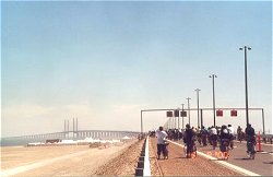 | マルメとコペンハーゲンを結ぶ橋が開通するのを記念して、自転車で国境を越えるツアーが企画されました(2000.6.8)。 |